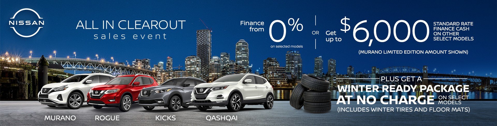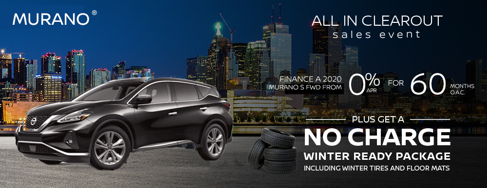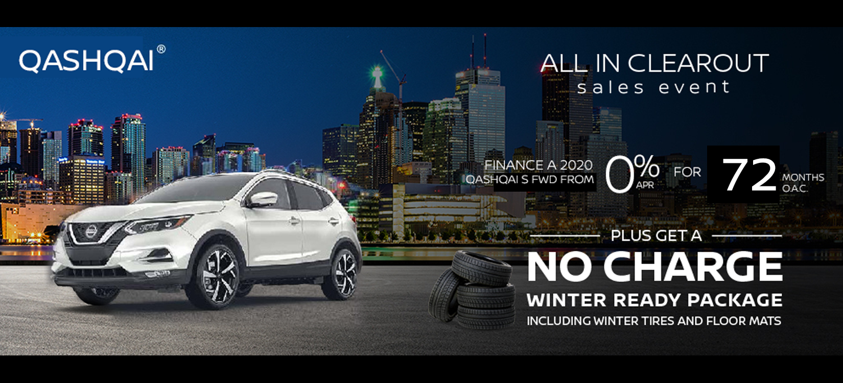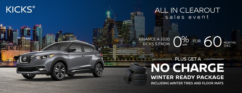 We are excited to announce we have continued our WINTER READY PACKAGE offers for the month of November! Waterloo Nissan and Nissan Canada want you to take advantage of All In Clearout event and our Winter Ready Packages at no charge (includes winter tires and floor mats) available on 2020 Kicks, 2020 Qashqai, 2020 Rogue, 2020 Murano, 2020 Sentra and 2020 Altima! We have the right stuff for the white stuff! With rates as low as 0% on select models o.a.c. or get up to $6,000 cash purchase bonus on other select models! It may be getting cold outside but these deals are hot!